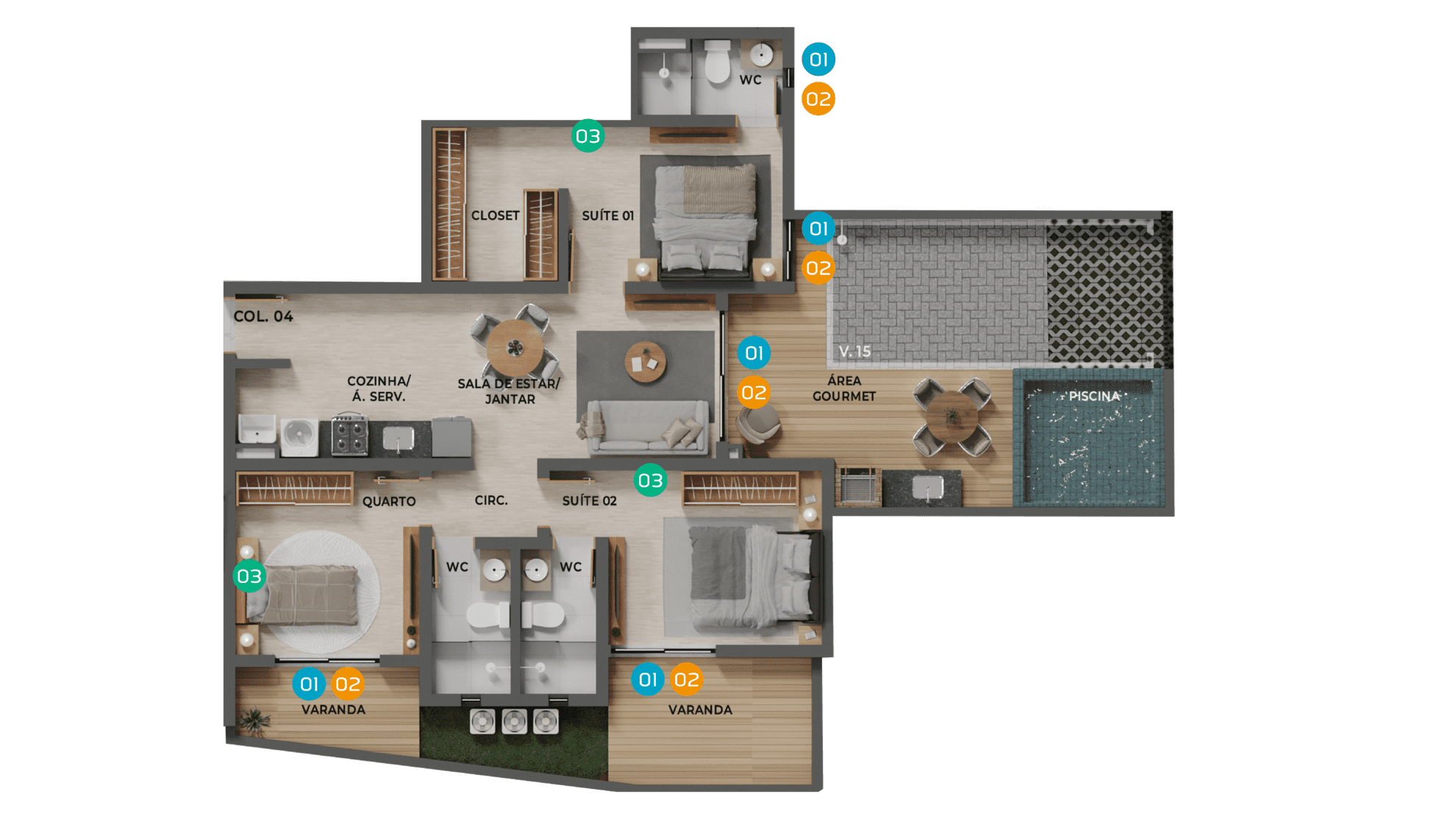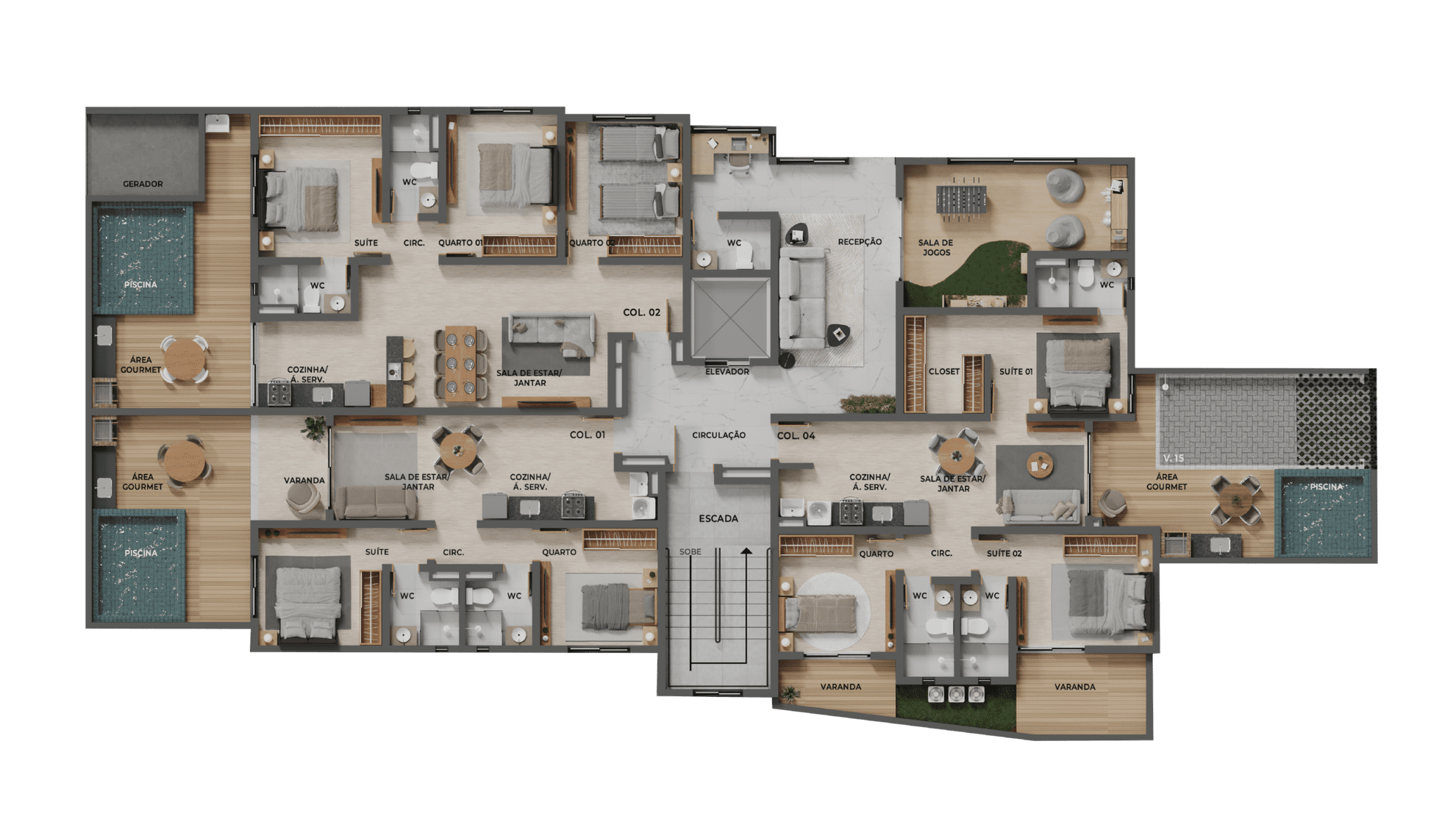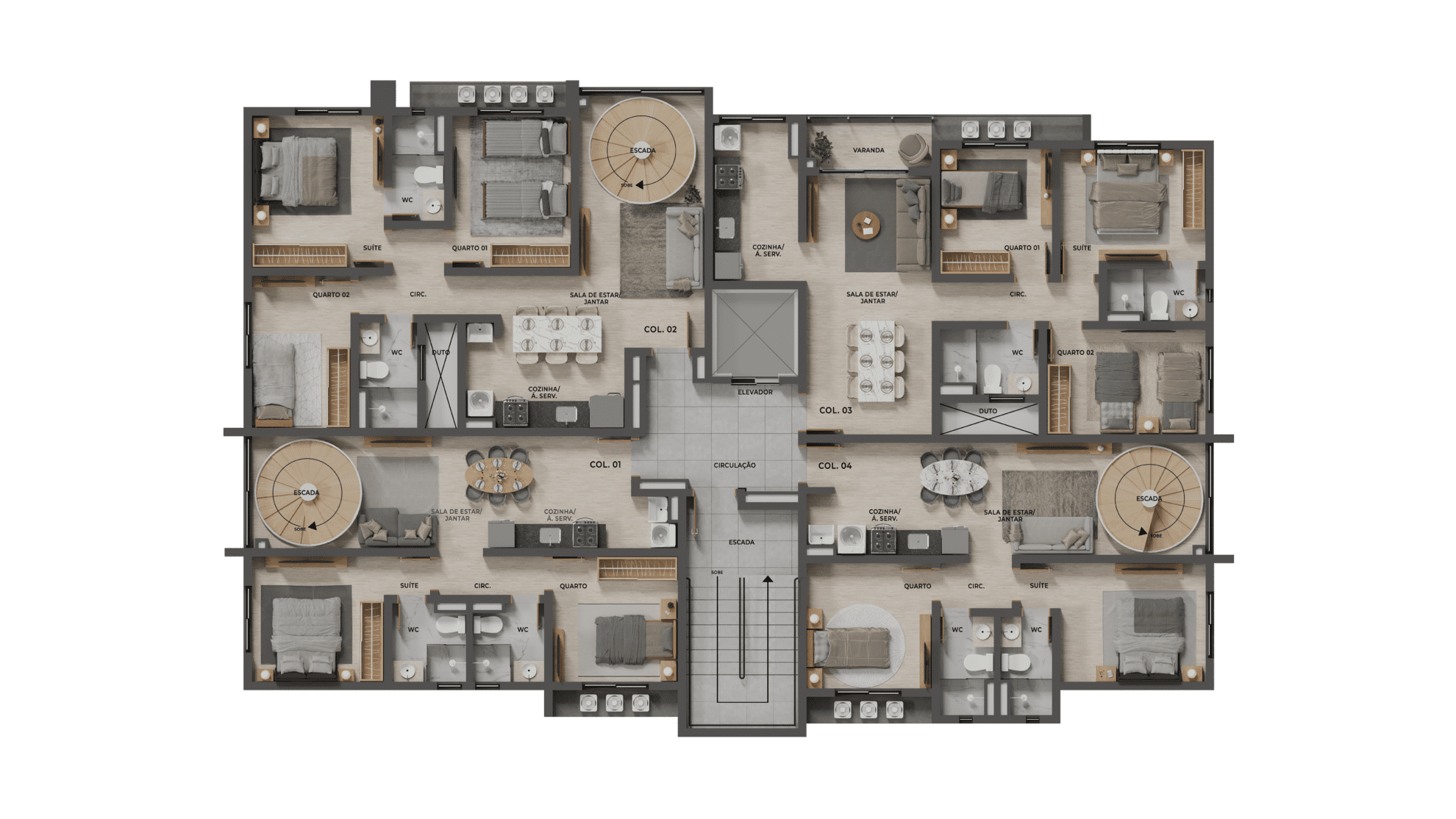 Seja em uma das casas espaçosas com áreas externas privativas e piscina, ou em apartamentos que combinam elegância e praticidade, o Hausen Park oferece diversas opções para atender às suas necessidades e desejos. Os Duplex na cobertura são verdadeiros refúgios urbanos, proporcionando espaços de convivência exclusivos, com lounges, piscinas e espaços gourmet para momentos de descontração.