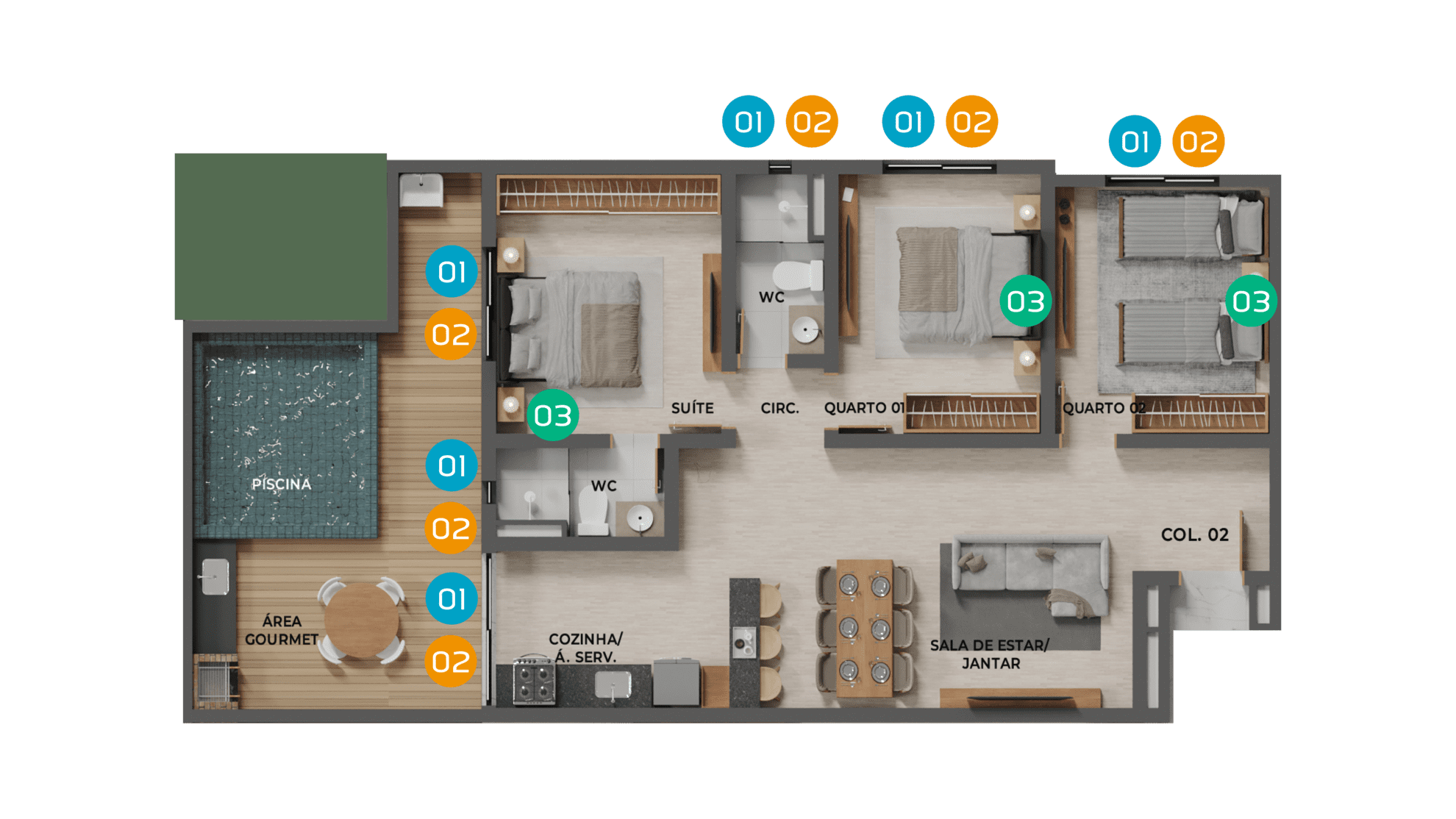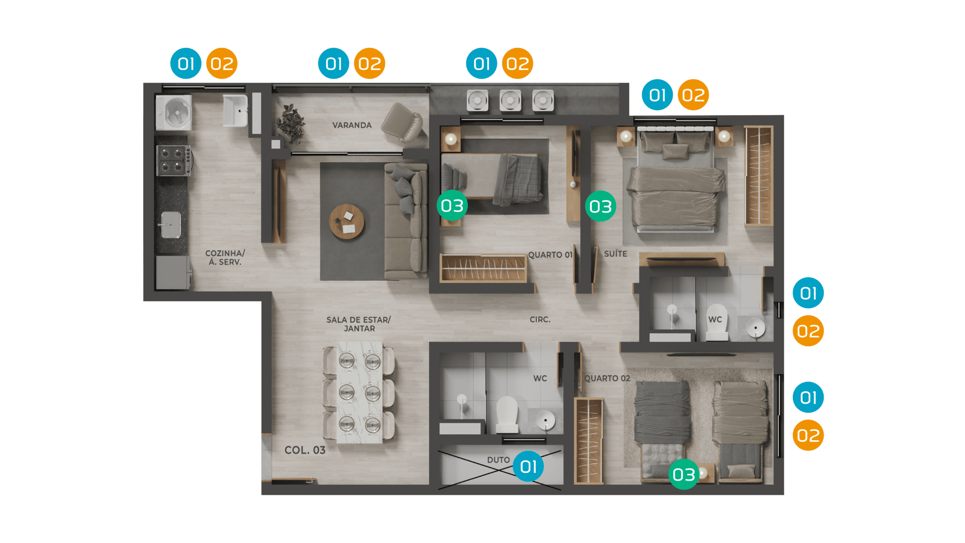 Desfrute da conveniência de ter supermercados, escola com educação de qualidade, parques para atividades ao ar livre e contato com a natureza para desfrutar de momentos tranquilos, shoppings para as necessidades do dia a dia e opções de lazer, tudo isso a poucos passos de distância.
